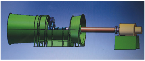2.風機采用單電機驅動,電機通過長軸安裝在風機外面,這種安裝方式特別適合大型礦井前后期使用功率差別大的特點,風機設計不受電機尺寸限制,根據需要使用不同的電機,節(jié)約能源,更換方便。